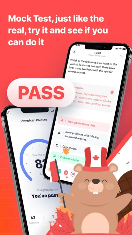 Congratulations! As long as you successfully pass the Canadian Citizenship Test 2022. We are committed to developing the Canadian Citizenship Test 2022. App to help you prepare and review, so that you can easily pass the test. Canadian Citizenship Test 2022 app is for general information use only. Nothing in this application is intended to provide legal advice or to be binding in any dispute, claim, suit, demand or proceeding.
