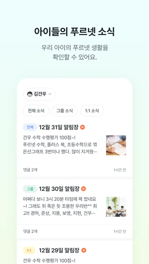 - 댓글로 선생님과 학부모의 자유로운 소통