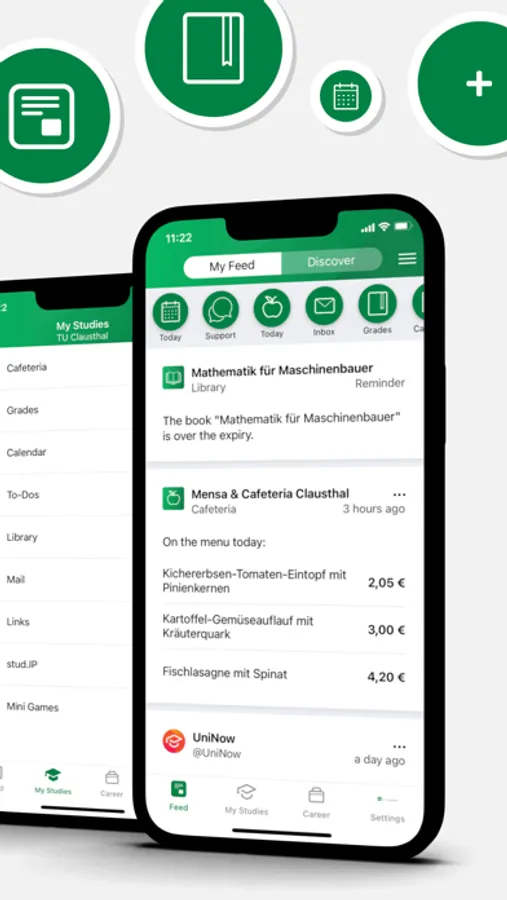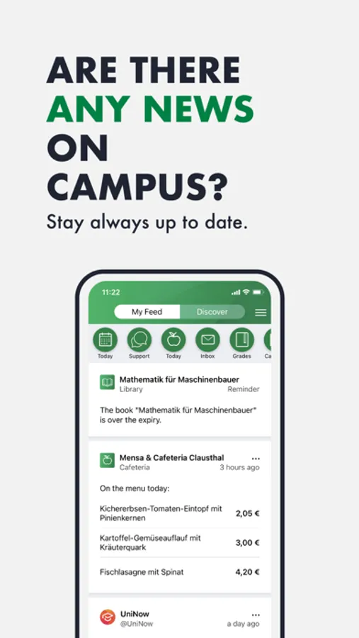 Everyday university life is exhausting enough, don't waste your time fighting through the confusing portals of the university. The app offers you everything you need to start every day well prepared, no matter if you have just started your studies or are already in your master's program.