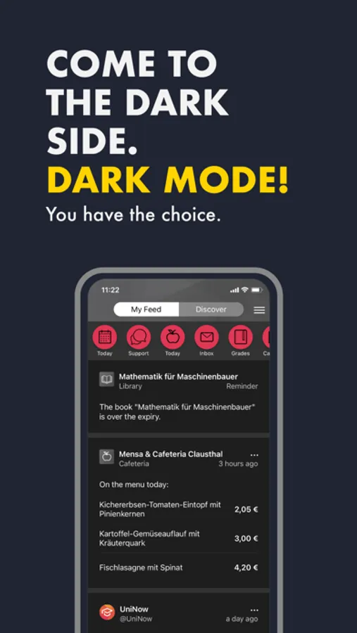 The app is your team partner on campus, which is impressive and integrates perfectly into your daily study routine. In no time at all, you have all the important information about your studies with you, wherever you are. You'll be surprised how easy it is.
