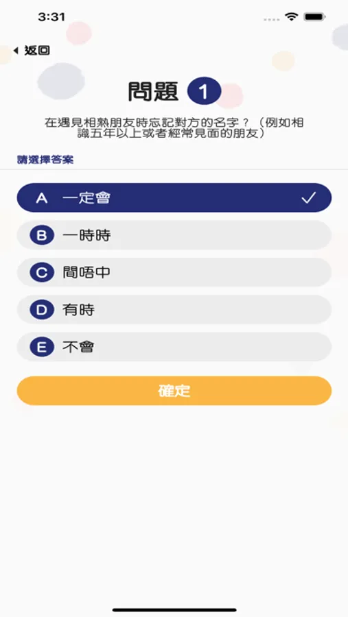 - The app provide The Ascertain Dementia 8-item Informant Questionnaire (AD8) for dementia screening, which helps to discriminate between signs of normal aging and mild dementia.(*This screening test is not for diagnostic purpose. Please seek help from professional for furthur enquiry.)