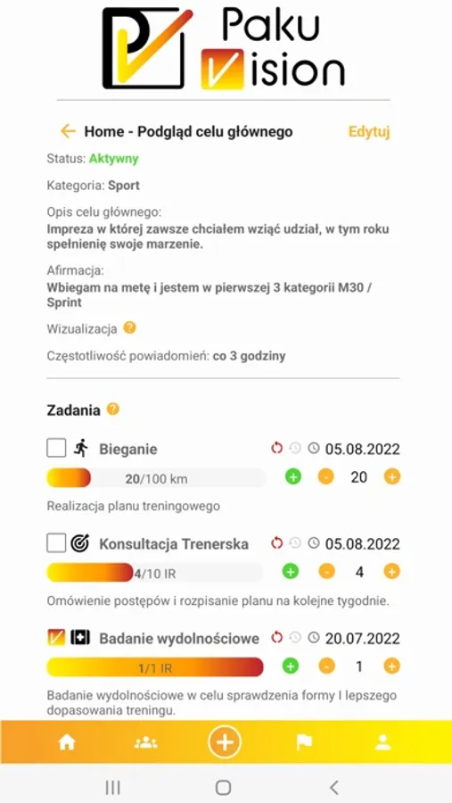 Wyznaczanie pośrednich celów pomoże Ci, trzymać się właściwych torów, oceniać postępy, planować i przewidywać przeszkody. Widzisz też, ile czasu zostało Ci do zrealizowania planu.