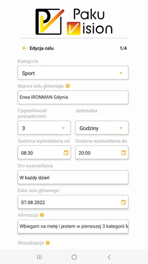 Aplikacja posiada gotowe szablony, obrazy, aby dodawać wizualizację celu. Skorzystaj z nich lub załaduj własne zdjęcia z galerii telefonu.