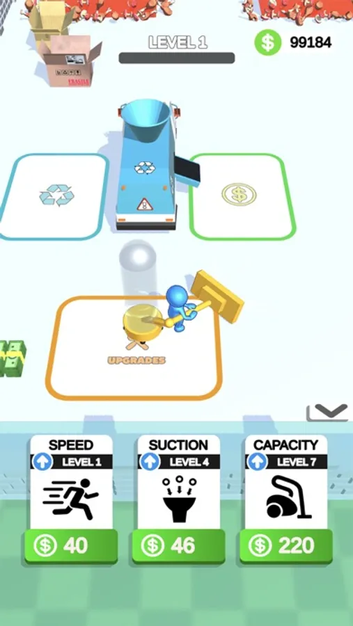 Recycle the rubbish and earn cashUpgrade your tools and ability