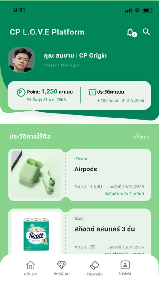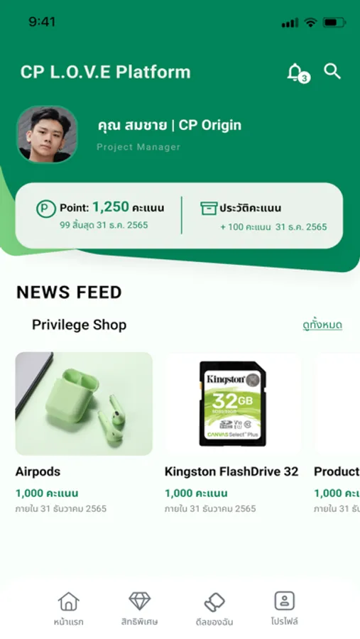 CP LOVE is an application that is a loyalty platform for employees of Charoen Pokphand Group by allowing employees to participate in activities to collect points and use points to redeem products and privileges