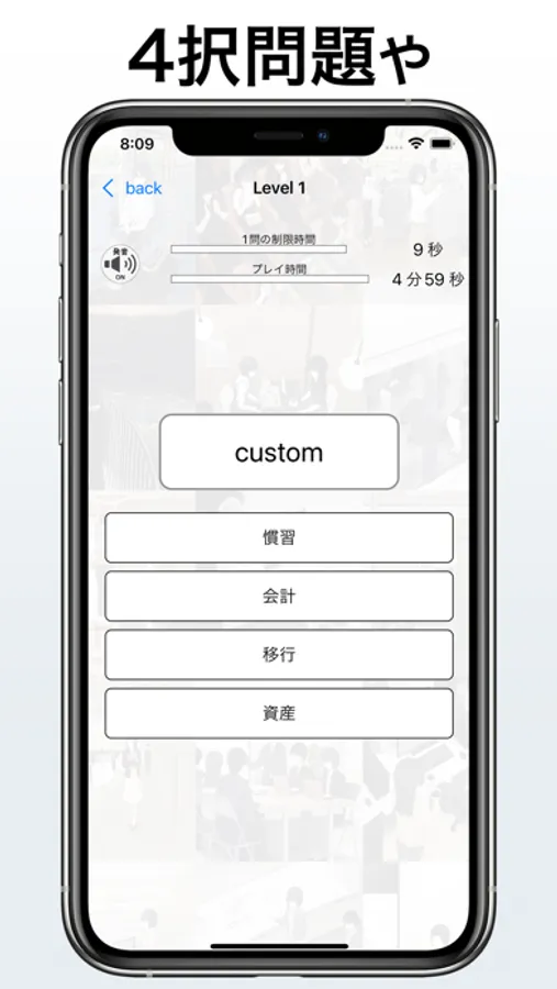 ・4択問題、もしくは記述形式の問題を解くことで英単語を学習できます。