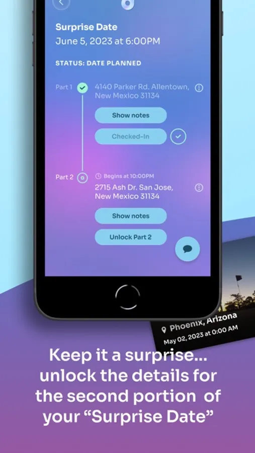 Tired of going on the same date over and over? Order a “Surprise Date”! After a short questionnaire which helps us better understand your preferences we plan an entire date experience for you and your partner. You set the budget! Our date planners will guide you along the way, neither of you will know what’s in store until you arrive! The dates are typically split into two parts. Users will unlock the second part of the date once the first part has been completed.