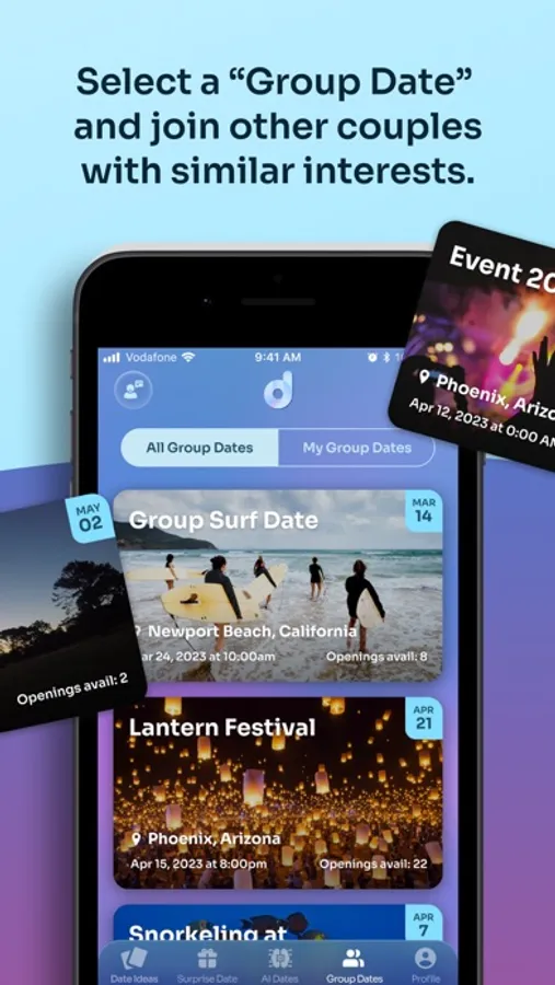 Lastly, we offer “Group Dates” which are pre-planned dates. Find couples with similar interests and join in on the fun together!