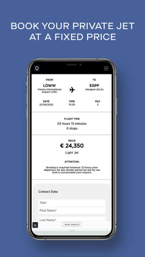 The Ocean Independence Jet Charter App makes private jet bookings easier and faster. To book your private jet it takes no longer than 2 minutes. You will receive an immediate price quote that you can book straightaway. Quite simply and in seconds - without tediously sending inquiries and waiting for an answer, without annoying cell phone calls with endless queues.