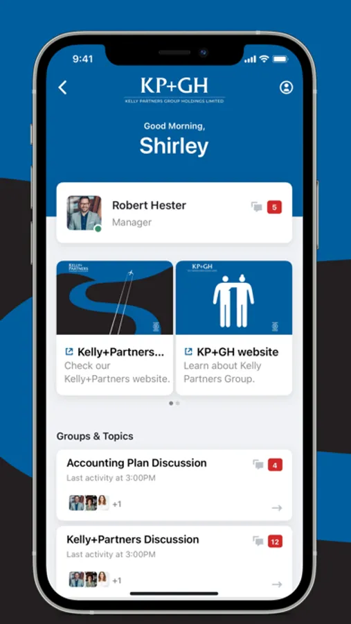 The KP+GH Partner-Owner-Driver ®( POD™) App helps firms communicate, share information and manage actions with the Kelly+Partners team.