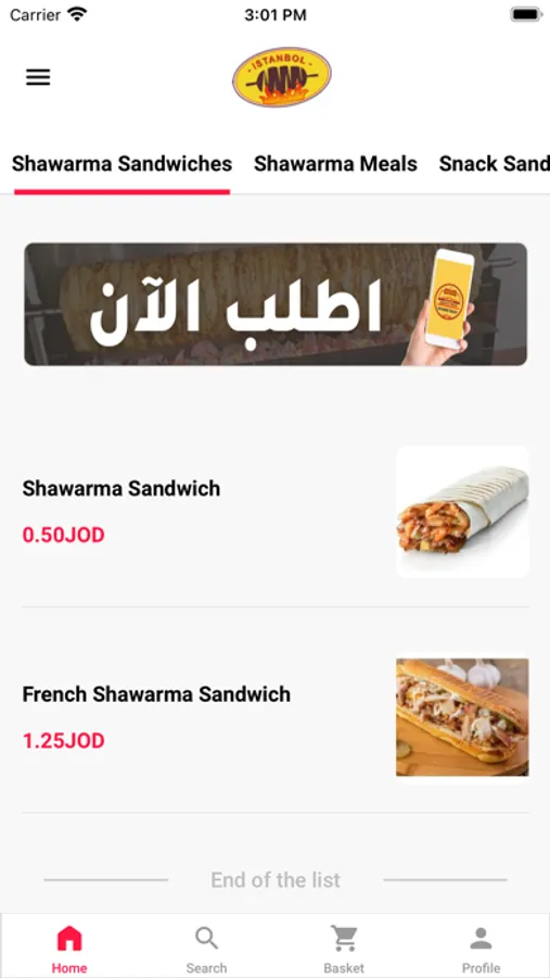 مطعم نكهة اسطنبول يقدم شاورما عالفحم وبروستد وسناكات