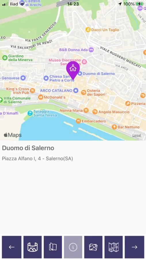 3) visualizzare una scheda dettagliata del punto di interesse o dell'evento selezionato, con visualizzazione di immagini panoramiche a 360°;