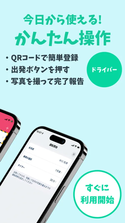 2.送迎が終わったら、車を停めた後にアプリで「写真をとる」