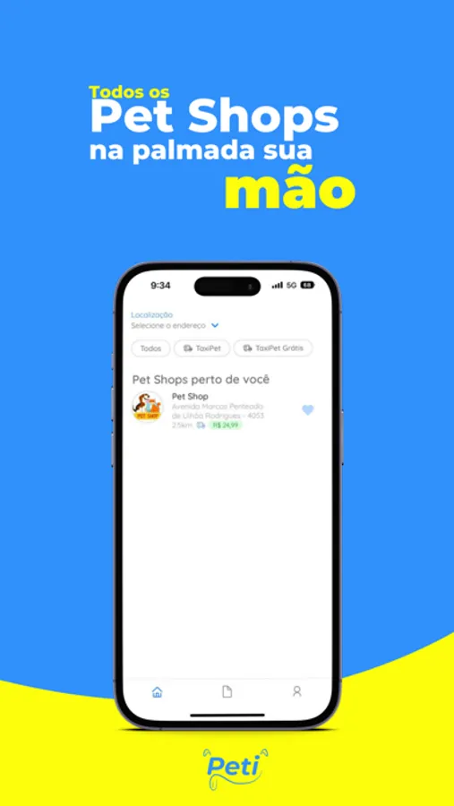 1. Baixe o aplicativo e compartilhe a sua localização para visualizar os Pet Shops da sua região