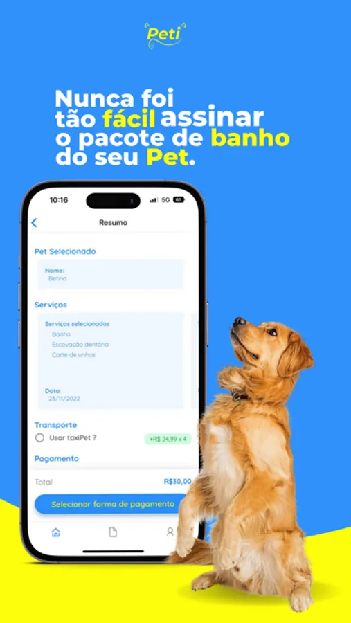 Pensou em agendar o banho do seu pet? Agende na Peti! Ligar, levar, assinar pacotes presencialmente para seu pet? Nunca mais! Com a Peti o banho do seu pet está a apenas alguns cliques de ser agendado.