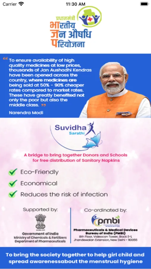 The Suvidha Sarathi scheme aims to facilitate the donors to make contribution for free distribution of a pack of 10 Suvidha Sarathi Pads every month to school girls (8th - 12th standard).