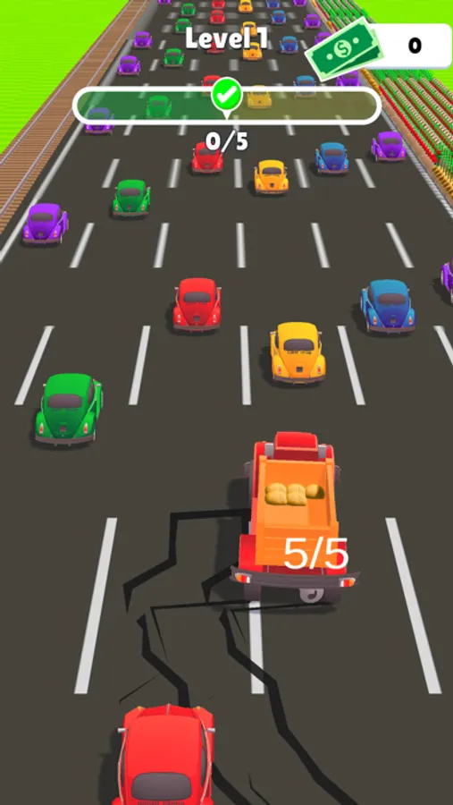 Swerve left side to load crops to train. Watch out for traffic and obstacles! If you crash, you may drop your crops.