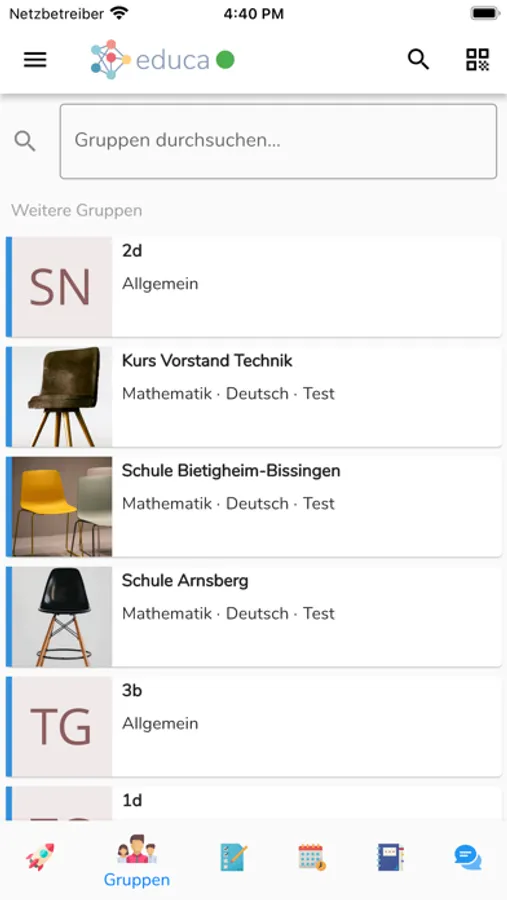 Gruppen dienen zur Strukturierung Ihrer jeweiligen Organisation in Lerngruppen. Eine Schulklasse oder Lerngruppe kann in einem geschlossenen Bereich Inhalte austauschen und weitere Werkzeuge für unterschiedliche Ziele verwenden. Dozenten können diese Gruppen verwalten, benötigte Funktionen konfigurieren und vieles mehr.