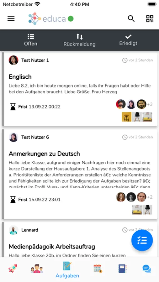 (Haus-)Aufgaben können komplett papierlos erstellt und bearbeitet werden. Lehrende erstellen dafür digitale Arbeitsblätter, konfigurieren optional die richtigen Antworten, definieren Fristen und weisen die Aufgaben ganzen Gruppen oder einzelnen Nutzern zu.