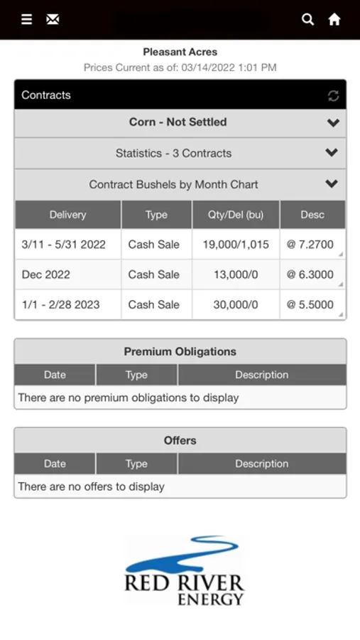 Track your scale tickets, contracts, and settlements plus monitor markets and cash bids right from your mobile device. Available for growers to download and use at Red River Energy.