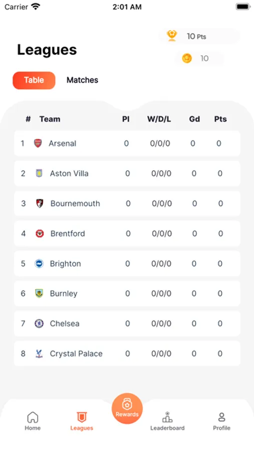 mobiSCORE Today Match Table