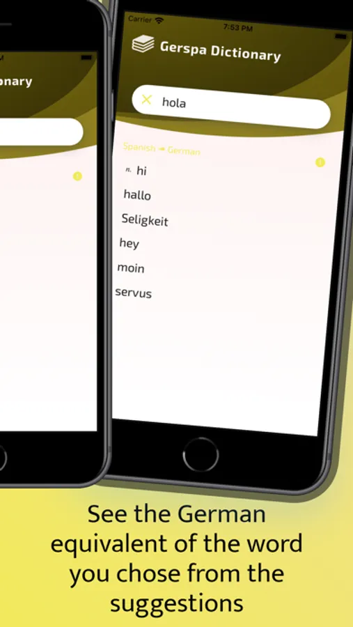 GERSPA is a bidirectional dictionary application. If you wish, you can translate words from German to Spanish or from Spanish to German without an internet connection. With its convenient and functional interface design, it is easy to use and at the same time, your searches will yield very fast results. You can view and redial the calls you made from the call log. You can use this dictionary on your travels, business trips, in short, in all areas where you need to socialize and learn.