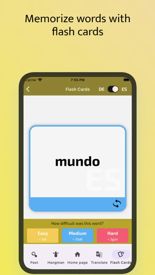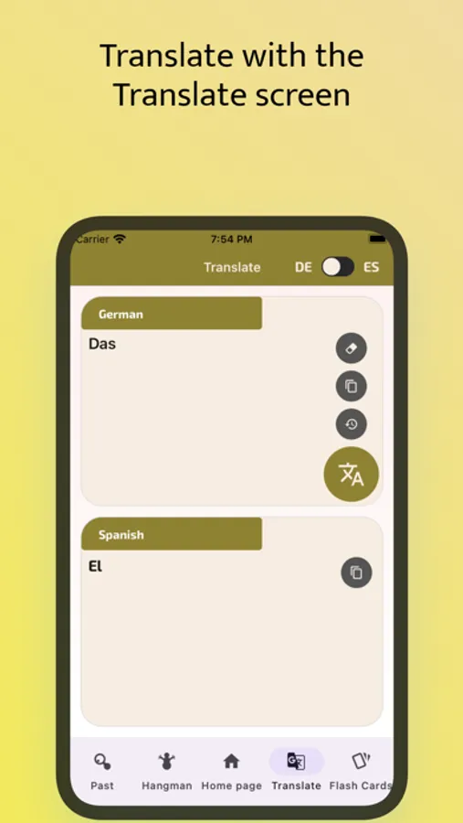 Besides word translations, the app also includes a hangman game to better practice the language to be learned and recognize words.