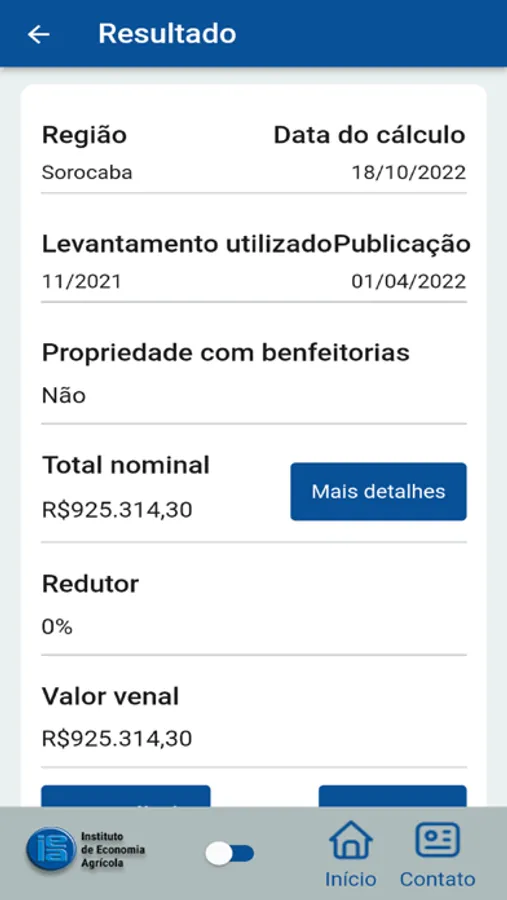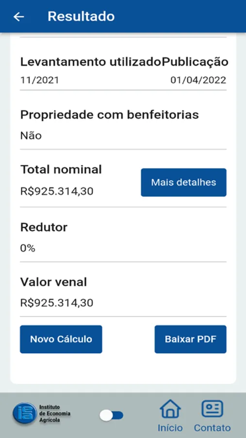 O Aplicativo permite Baixar um relatório em PDF com o cálculo realizado a partir dos dados preenchidos.