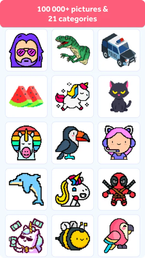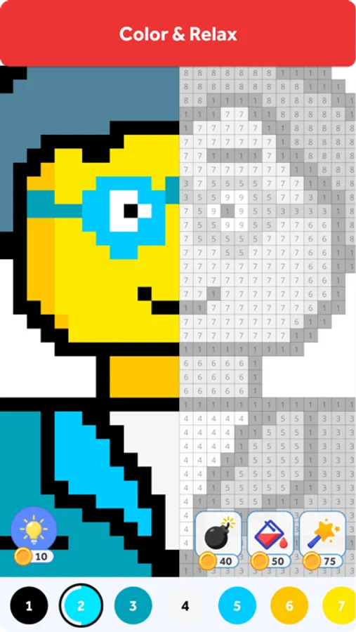 Relax by coloring your favorite pictures by numbers or create your own pixel graphics! The perfect game for kids to develop creativity with an endless number of pictures to color. Pixelmania is free and you don't have to pay for the pictures.
