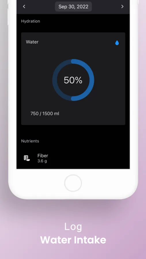 Dashboards that display the day's overview of calories, nutrients, and hydration