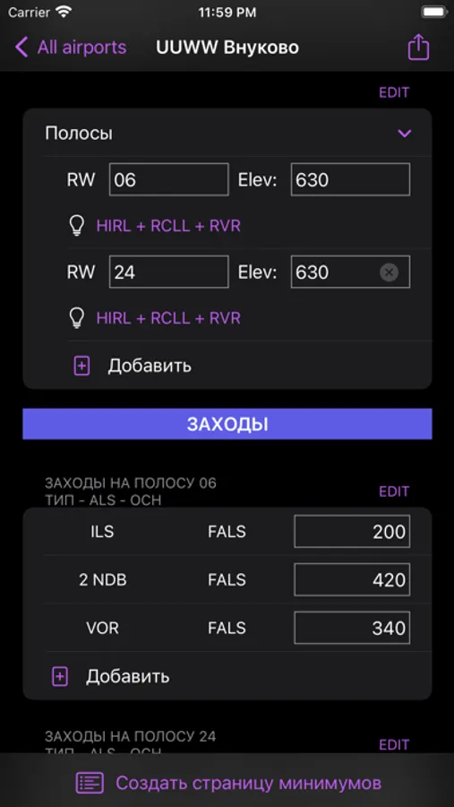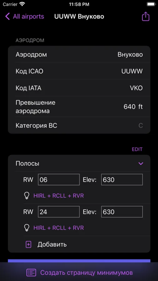 - Создание как полного справочника, так и данных только по одному аэродрому