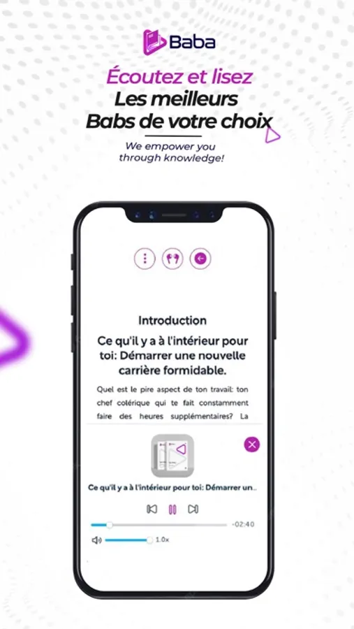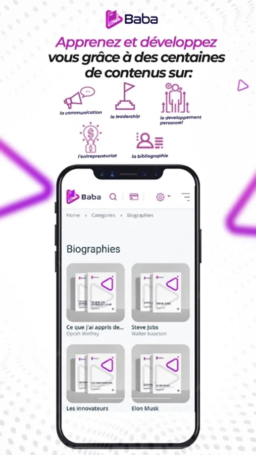 Dans les grands livres et dans différents types de contenus didactiques. BABA condense les livres à succès les plus inspirants et d’autres contenus didactiques populaires afin de les rendre plus digestes pour toi et que tu puisses les lire/écouter en 15 minutes environ.
