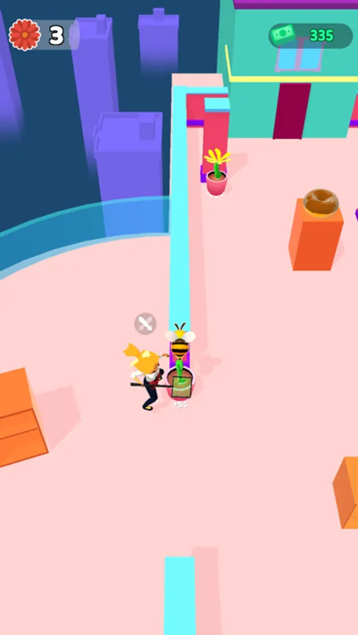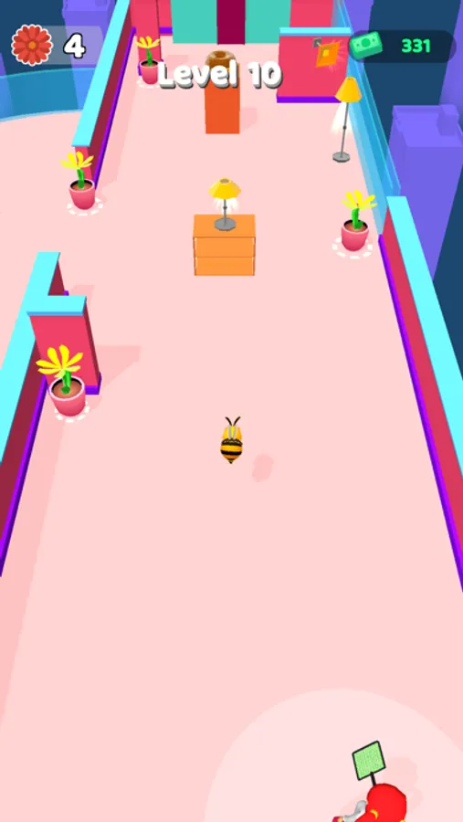 but if enemy chasing bee, when he collides with different big objects on the way they also demolish, and destruct and you will get bonus money from them.