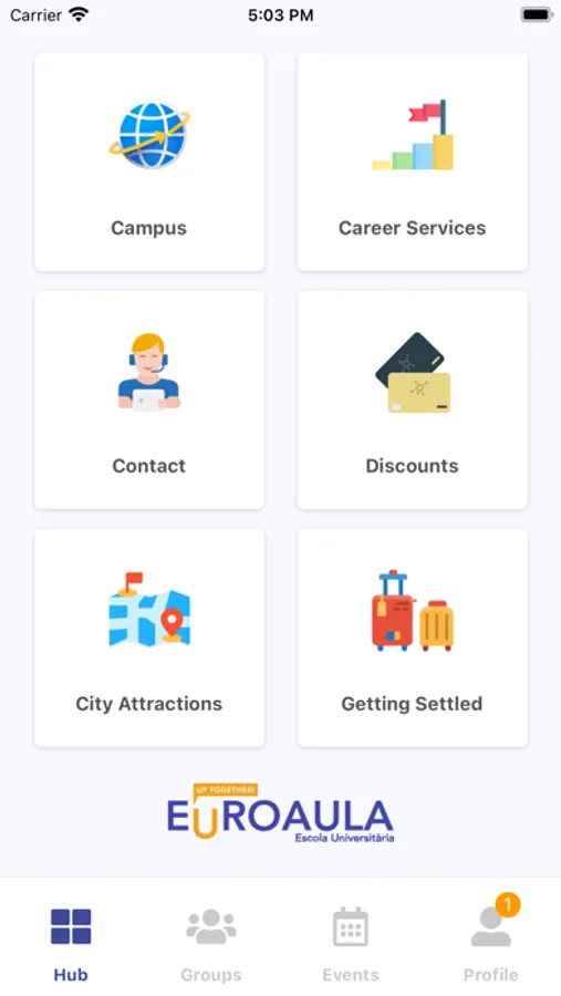 The Euroaula app gives you access to your Euroaula Campus network, and Career Services, as well as an easy way to contact your school.
