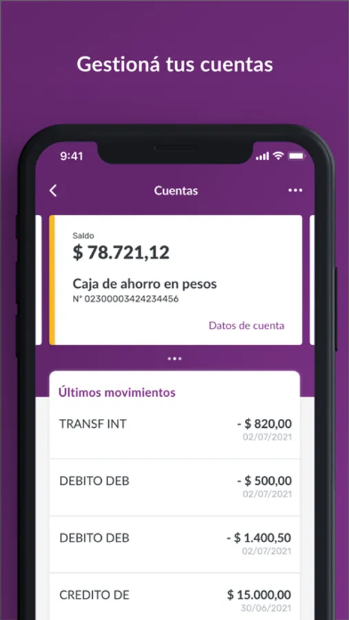 - Consultar tus movimientos, saldos y detalle de tus cajas de ahorro y cuentas corrientes.