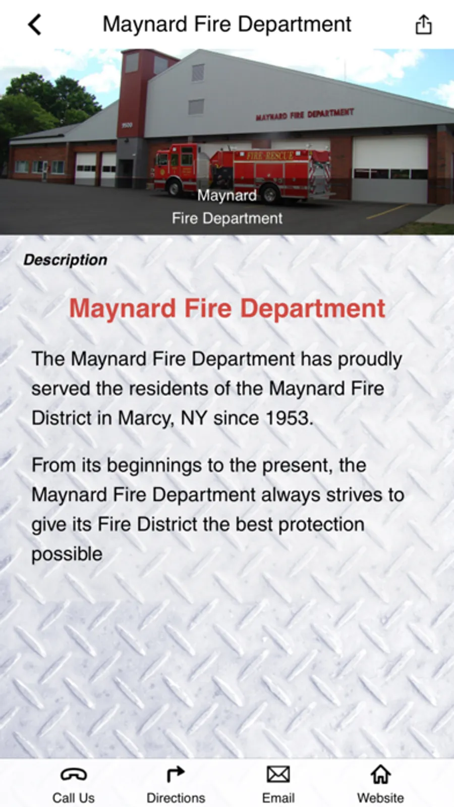 On behalf of the men and women of the Maynard Fire Department, welcome to our app. This app is for the employees and family members of the Maynard Fire Department as well as the community it serves. It contains information about our department as well as safety and crime prevention tips. Maynard Fire Department employees will have access to a full range of wellness tools.