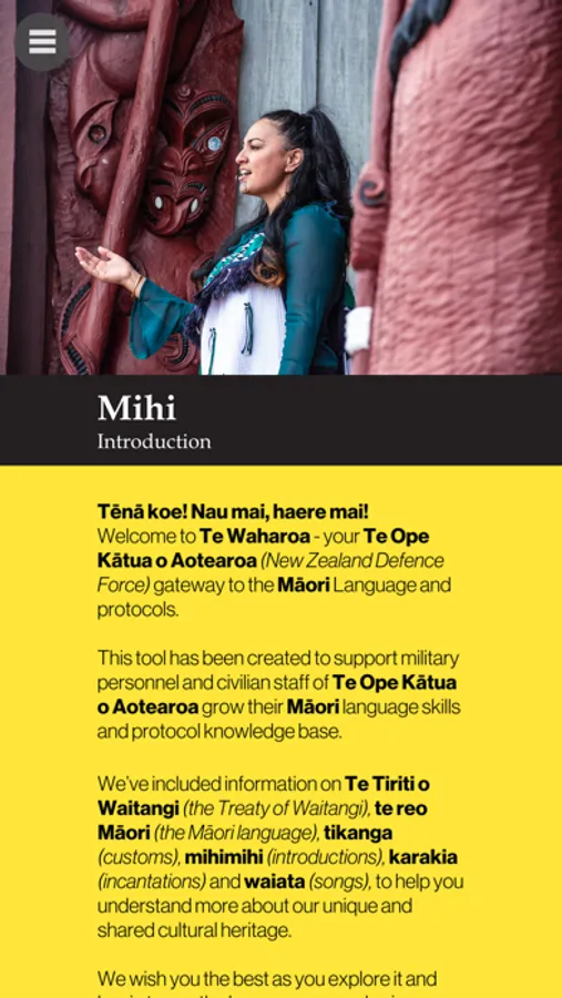 This application is for all members of Te Ope Kātua o Aotearoa|New Zealand Defence Force, including families and friends, who want to increase their confidence and understanding of te reo Maori and tikanga Maori (customs, practices), especially within the work of your Defence Force.