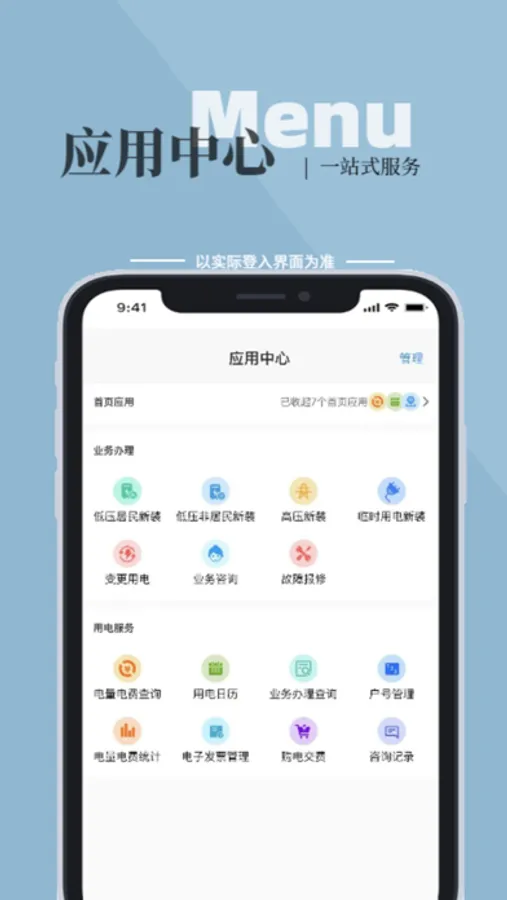 【基础业务】为您提供用户交费、查看公告、查询电量电费、业务咨询、故障报修、申请办电相关的业务等功能,与营销系统贯通,随时随地办理用电报装业务,实现业扩报装工作程序标准化、简化用电手续,缩短业扩报装周期。