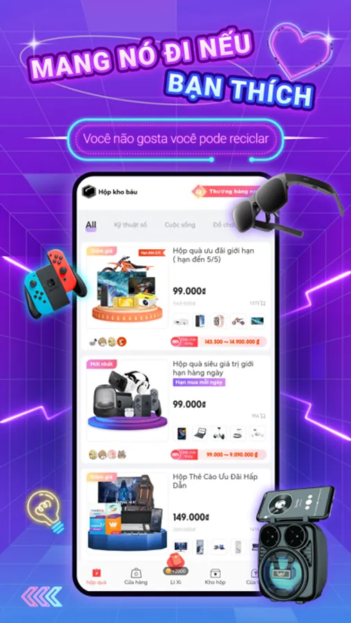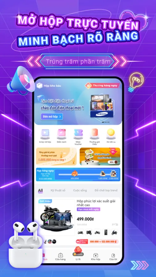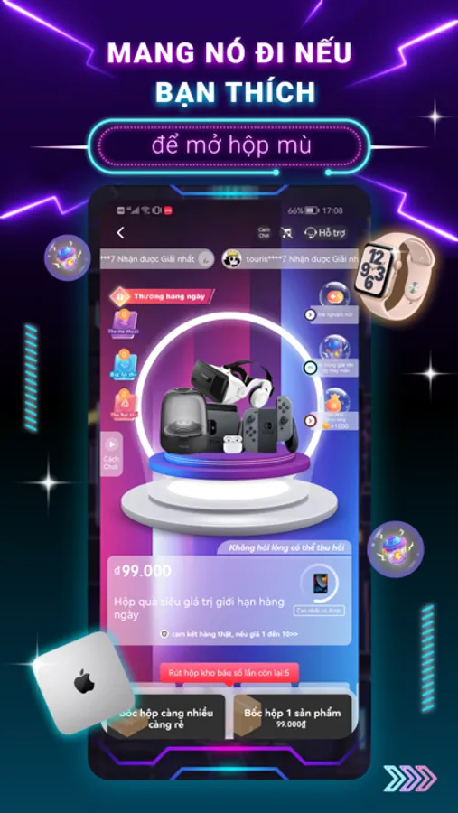 Phần mềm mua sắm nổi tiếng của giới trẻ, hàng ngàn thứ thời thượng trên mạng đang chờ bạn mở ra! Tất cả các sản phẩm đã được kiểm tra nghiêm ngặt bởi các cơ quan, vì vậy rất yên tâm và đáng tin cậy. Mở ra một kỷ nguyên mới của trò chơi hộp mù!