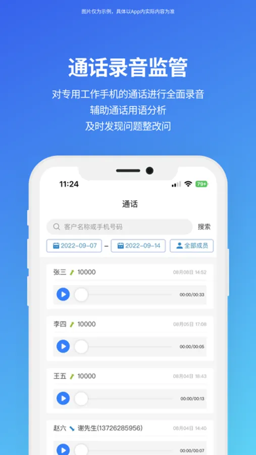 对专用工作手机的通话进行全面录音,辅助通话工作分析,及时发现问题整改问题。
