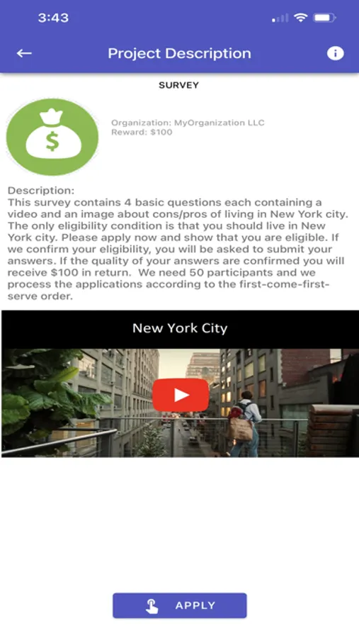 An eligible participant will search the database for the existing opportunities and apply for any suitable project. If the participant is eligible, he/she can complete the tasks, and make real money once the quality of his/her submission is approved by the provider.