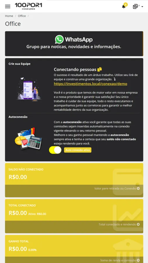 A 100por1 Conexões nasce da necessidade de conectar amigos e familiares ao mercado financeiro de forma simples e centralizada. Sempre ouvi e recebi pedidos de amigos para unir o seu crédito ao meu, a fim de alavancarem seus rendimentos ideia a qual foi posta em prática com alguns (spoiler), mas nada formalizado. Pensei e busquei uma forma de formalizar e potencializar esses resultados, transformando um cardume em um verdadeiro tubarão.