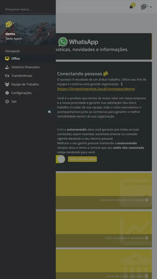 Uni a ideia do ganho em renda fixa com formação de equipe e assim nasce o primeiro sistema de MMN (Marketing Mult Nível) com 100% dos investimento em Fundos de renda FIXA. Eu, Wilton Tavares em momento algum indico ou escolho onde aplicar, este serviço é feito por uma empresa com profissionais certificados e autorizados pelos órgãos competentes. Meu trabalho é apenas conectar pessoas e dividir de forma verdadeira e justa os rendimentos para mostrar que podemos sim, ter muito rendimento trabalhando honestamente.