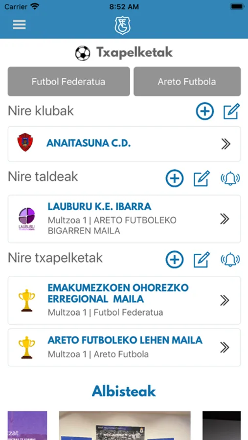 Federazioaren futboleko eta areto futboleko txapelketa guztien ordutegiak, egutegiak, emaitzak eta sailkapenak kontsulta daitezke. Gainera, erabiltzaileek klub, lehiaketa eta talde gogokoenak konfigura ditzakete, unean uneko emaitzen eta ordutegien jakinarazpenak jasotzeko.