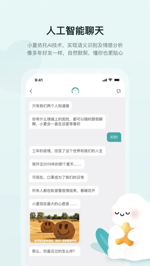 小夏聊天机器人是华夏心理推出的一款舒缓情绪app,像一个贴心的朋友一样,随时随地的陪在您身边,同时还提供了正念冥想、疗愈音乐、非暴力沟通等工具,让您能够更积极的面对生活,找回本该属于自己的快乐