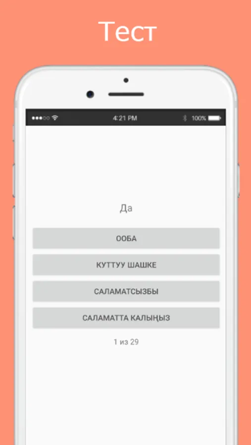 После прохождения теста по выбранной теме, можно просматривать ошибки. Также, результат прохождения теста по каждой из тем сохраняется, ваша цель - выучить все слова в выбранной теме на 100%.