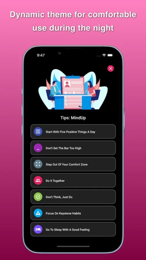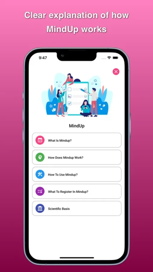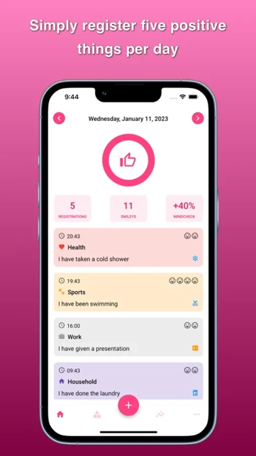 MindUp uses a scientifically proven method to build a better mindset. You start with a simple exercise where you only need to register 5 positive experiences per day.