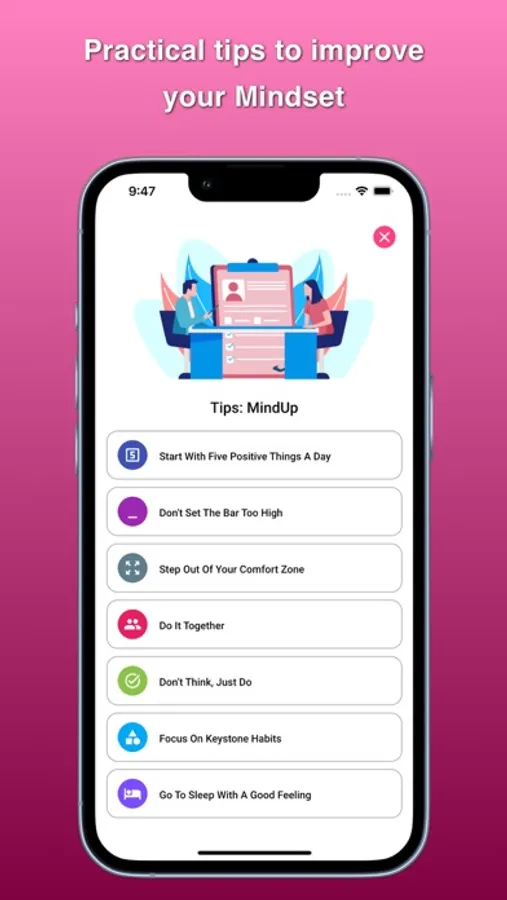 MindUp is a tool that helps build a positive mindset by creating the habit of positive thinking.