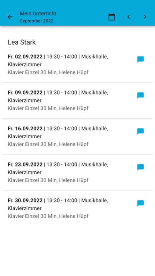 Du kannst Deinen Unterricht mit Deiner Lehrkraft über die APP planen. Du hast die Möglichkeit zum online Unterricht über die APP. Du kannst Dich im Chat mit Deiner Lehrkraft austauschen.