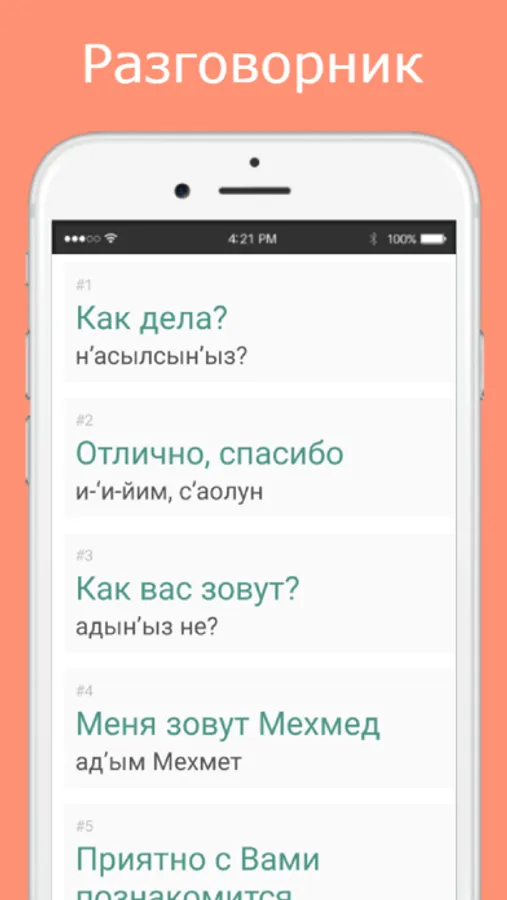 Русско-турецкий разговорник можно использовать соответственно, как разговорник, так и инструмент для изучения турецкого языка. Все турецкие слова написаны русскими буквами и разбиты на 11 логических тем, то есть разговорник рассчитан на русскоговорящего пользователя (туриста).